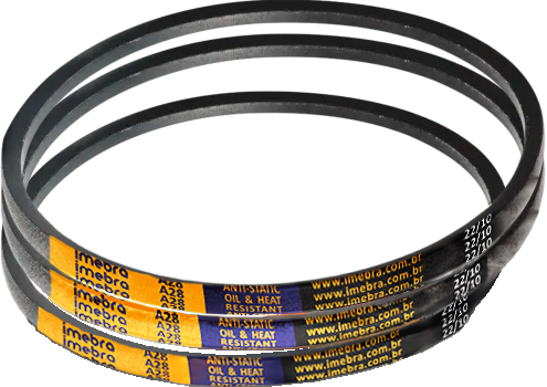 Opções de correias envelopadas ou com dentes moldados e de correias geminadas.