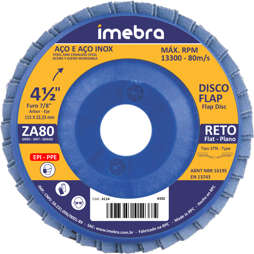 Detalhes: Disco com suporte em material plástico reforçado com fibra de vidro. Design T27 reto para acabamentos. Abrasivo de óxido de zircônio e óxido de alumínio.
