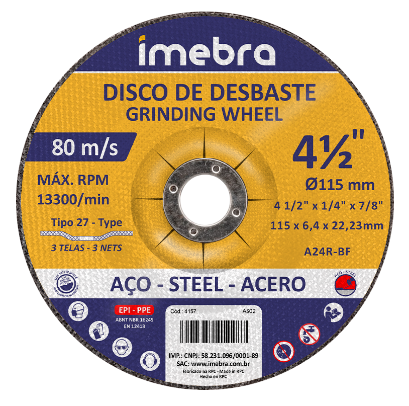 Disco de desbaste para uso industrial para desbaste de superfícies e arestas de aço carbono.