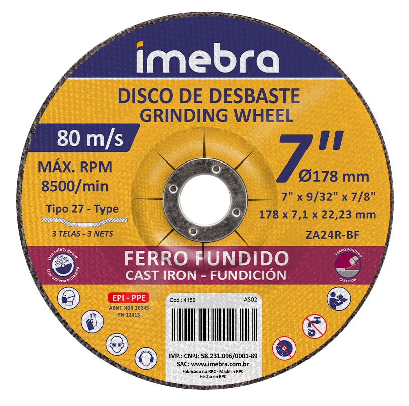 O disco de desbaste FERRO FUNDIDO IMEBRA foi desenvolvido para a aplicação em materiais fundidos como ferro fundido cinzento e ferro fundido nodular. Pode ser utilizado no desbaste, na rebarbação e em acabamentos.